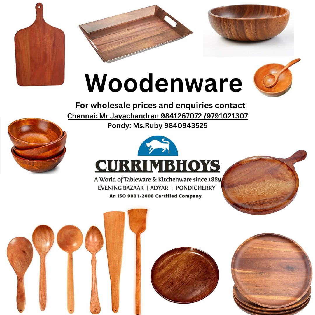 Wooden products are coated with food safe wax at the most - no varnish or toxic polish.