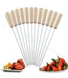 BS Kitchenware - WOODEN HANDLE KEBAB ROD 12PCS 40CM HEAVY-023...