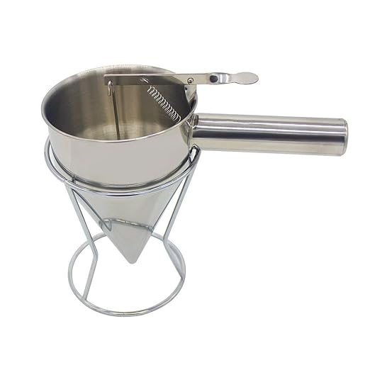 - The wide mouth opening makes the batter dispenser easy to fill. Now pouring in your cake, brownie, and waffle batter will be a breeze.