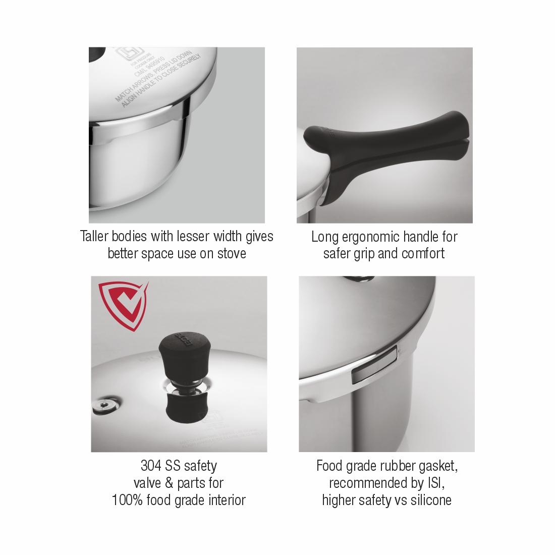 - Inner surface made of safe and hygenic food grade SS 304 stainless steel