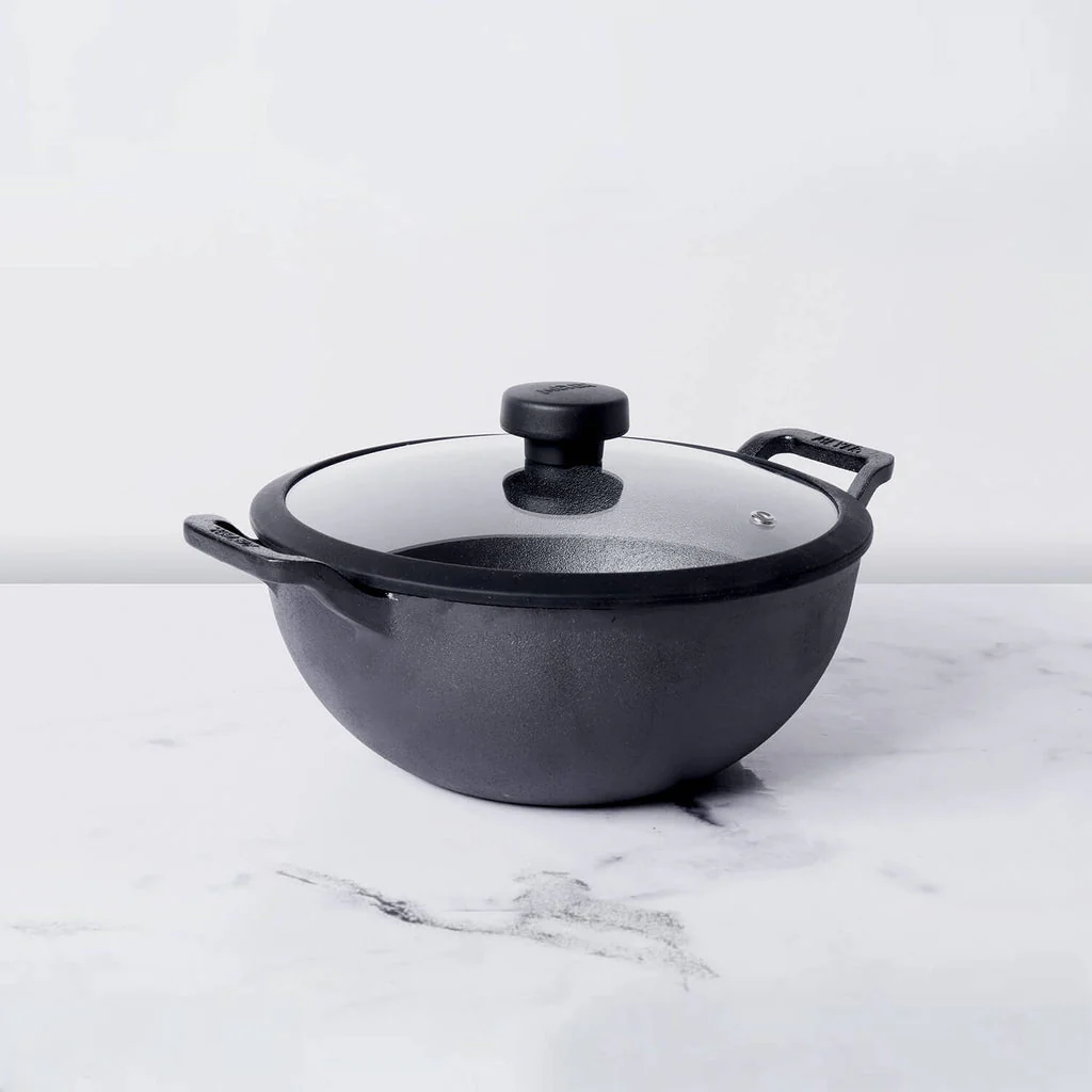 MEYER USA - COOKWARE-Cast Iron Deep Kadai with Glass Lid 20cm Code 48187-C 2021