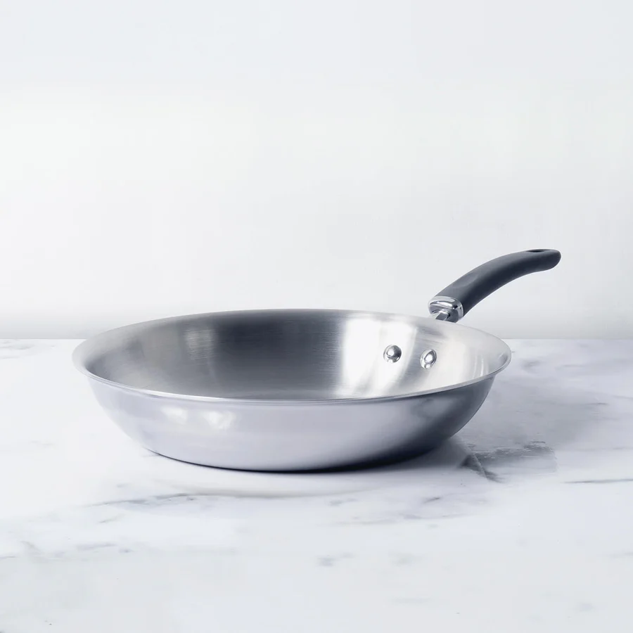 Capacity (Volume): 2.97 L - Tough and Durable Triply Construction: Enhance your cooking experience with our frypan equipped with a tough and durable triply construction. Designed for longevity and optimal performance, this triply configuration offers even heat distribution and dependable results. Meyer Trivantage stainless steel range withstands the demands of daily cooking, while the aluminum core encased within non-toxic stainless steel layers ensures precise and flawless cooking each time.