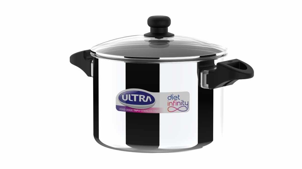 - It contains three layer of materials, the inner and outer layers are SS and the middle layer is aluminium for even heat distribution.