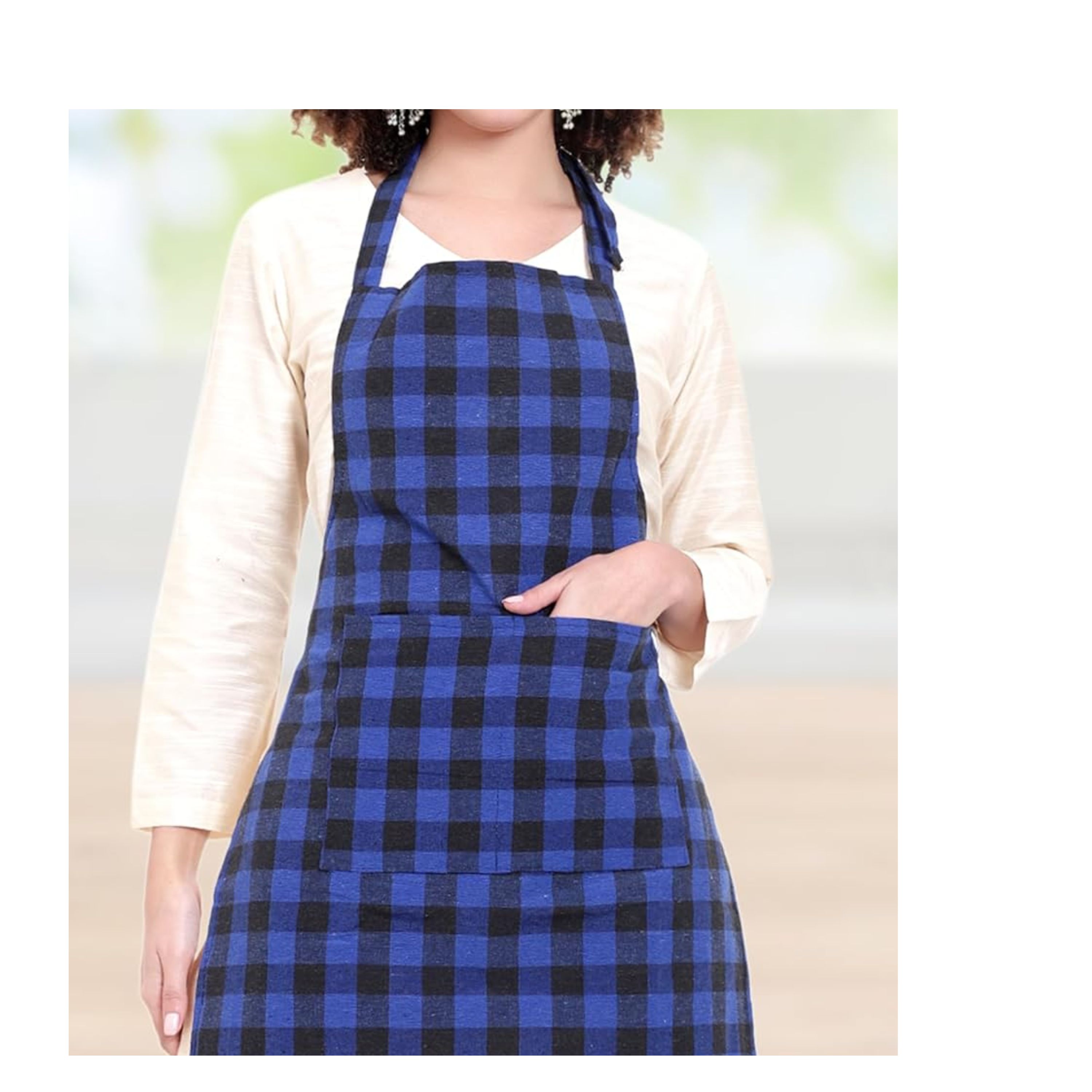 BS Kitchenware - APRON CHECKED CLOTH [ BLACK & BLUE ] - 023