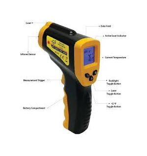 - Thermometer gun instantly provides accurate temperature readings on its backlit LCD screen in °C or °F units. Laser temp gun thermometer is the best pizza accessories & grilling accessories to achieve perfect results every time.