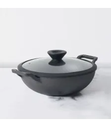 MEYER USA - COOKWARE - Cast Iron Kadai with Glass Lid 26cm Co...