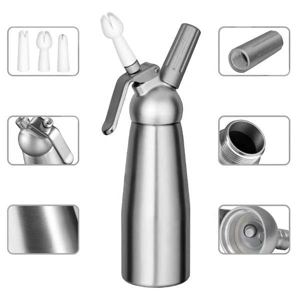 - Professional-Grade Whipped Cream Dispenser – Crafted from durable aluminium, the Cream Whipper is built for heavy-duty, professional use. Perfect for home kitchens, cafés, hotels, and restaurants to create gourmet whipped cream toppings with ease.