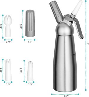 - Efficient & Easy-to-Use Design – 350+ mL capacity canister is designed for optimal convenience. Shake well after filling the cream for the best results, ensuring fluffy, creamy toppings every time. Use with standard whipped cream chargers.