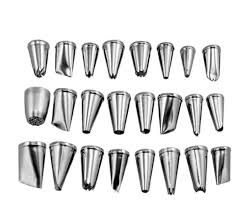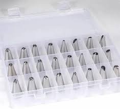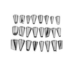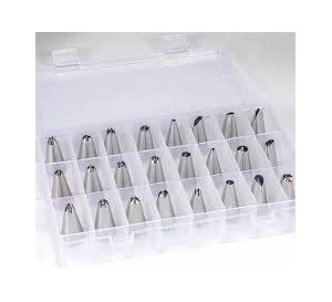 - 24 durable stainless steel icing nozzles to create designs for swirls, rosettes, flowers, stars, ropes, leaves and more.