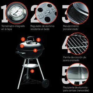 - Air flow for perfect Barbeque- The rust proof aluminum vents provide proper air flow for perfect barbeque. It has heavy-gauge steel charcoal grate.