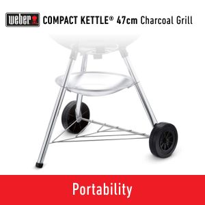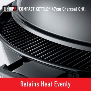 - Porcelain-Enameled Coated Kettle - The lid and bowl of the compact kettle are made up of steel and are Porcelain- Enamel coated inside and out and are fire resistant. It also has a rust resistant ash catcher.