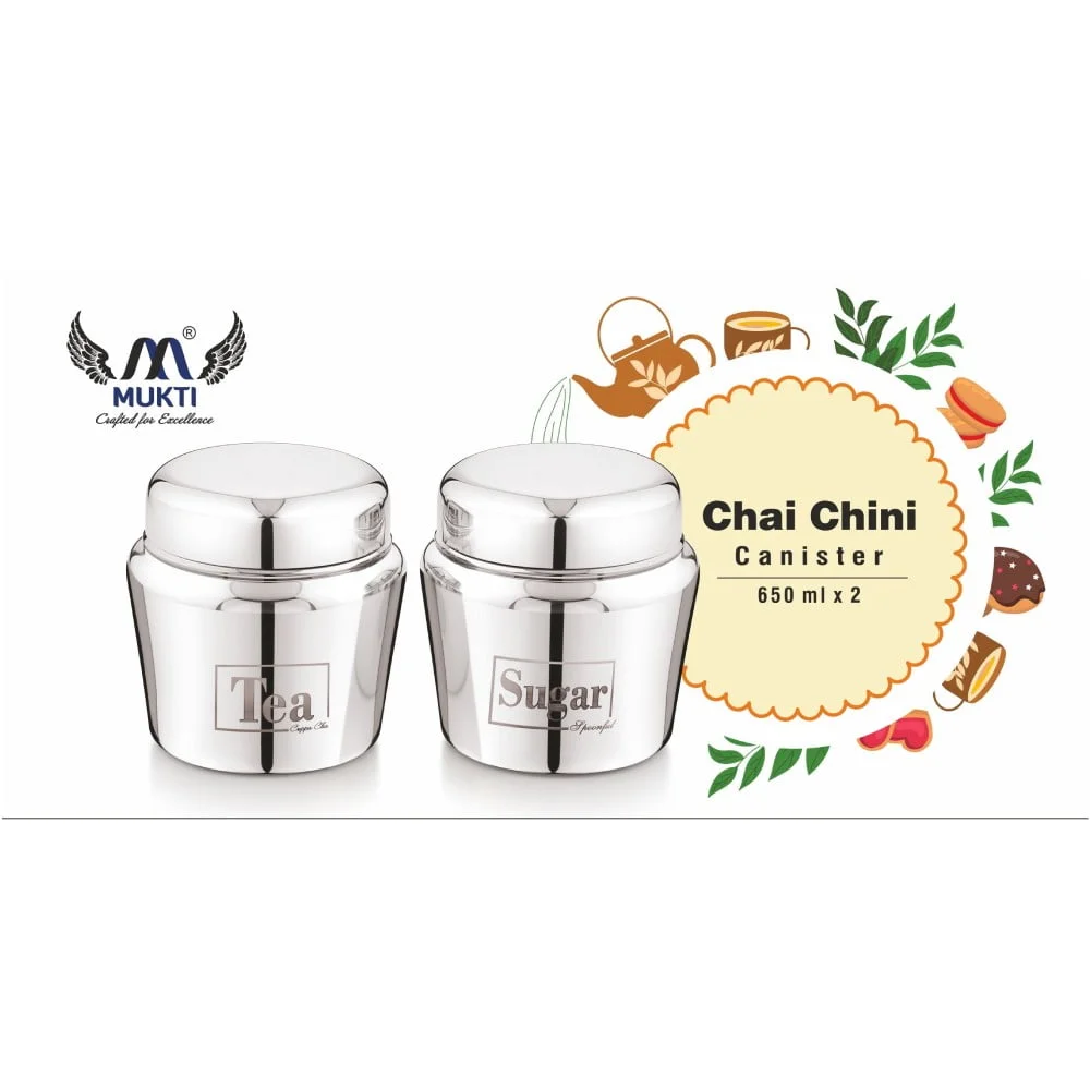 MUKTI SS - Chai Chini Dabba 2pcs set Plain Lid 1300 ml>024