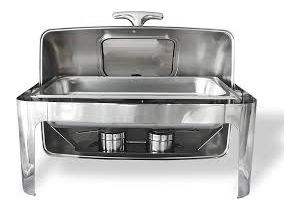 - Chafing dish is made from heavy-duty polished stainless steel with chrome accents, and a mirror finish.