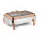 ANTHEM5-MEC 43FGTQ RG/AU/RG 7LTR Round Chafer With Full Glass Window Rose Gold Stand, Golden Base and Rose Gold Lid. With full covered standCan be used with Induction Heater, Fuel burner or Heating Plate. Heater/ Heating Plate Not Included