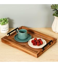 MAW HARD WOOD - TRAY WITH IRON HANDLE(18X12X2 INCH)ACACIA >025