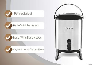 - It comes with a sturdy body that makes it an ideal beverage carrier is perfect for home, office, events, picnics and functions. Wide mouth opening and easy grip lid make filling, cleaning, opening and closing convenient, handle for convenient carrying