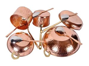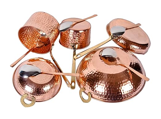 - This set is made from high quality Pure Copper making it exclusive and durable. 2) This set has been beautifully designed to add grace to your dining experience. 3) Easy to clean and wash, With Pitambari Powder & they have very exotic shining.