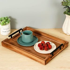 MAW HARD WOOD - TRAY WITH IRON HANDLE(18X12X2 INCH)ACACIA >025