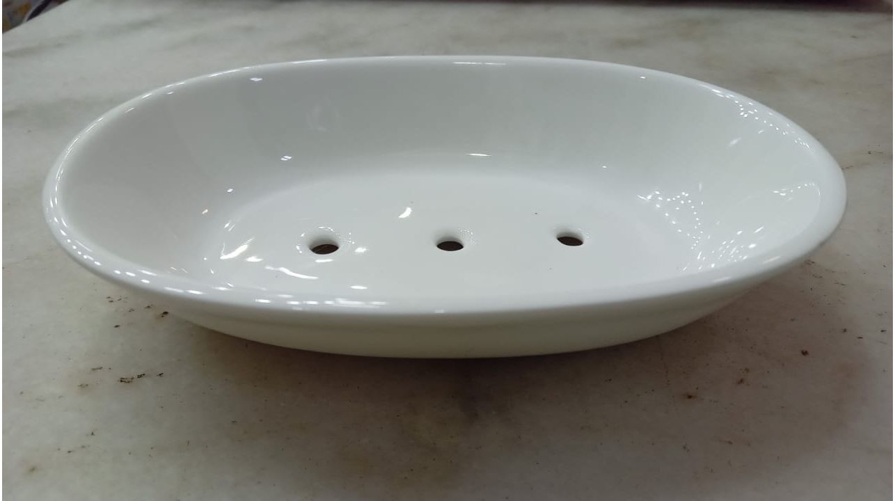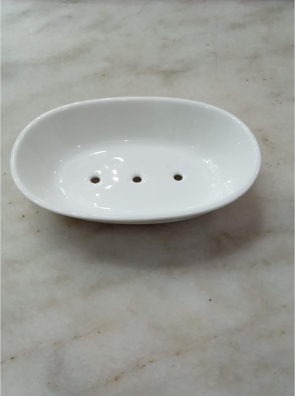 Soap dish with 3 holes that is easy to clean and saves soap from dissolving.