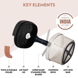 - EFFORTLESS CHOPPING - The EazyPull Chopper 600 ml with 3 Blades simplifies your kitchen prep work. With a sturdy, durable string mechanism, this chopper effortlessly cuts through vegetables, fruits, and more, making it a versatile addition to your culinary toolkit.